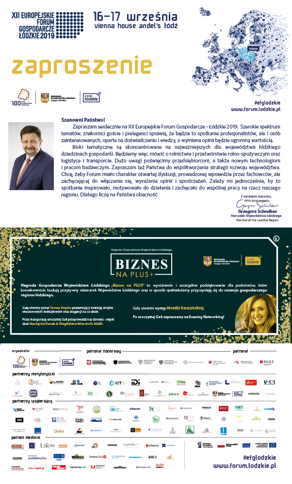 Podczas uroczystej gali pierwszego dnia Forum poznamy laureatów Nagrody Gospodarczej Województwa Łódzkiego „Biznes na PLUS” – firmy, które przyczyniły się rozwoju naszego regionu.